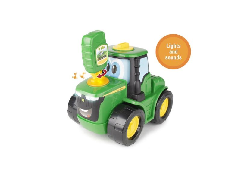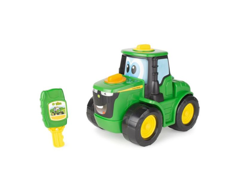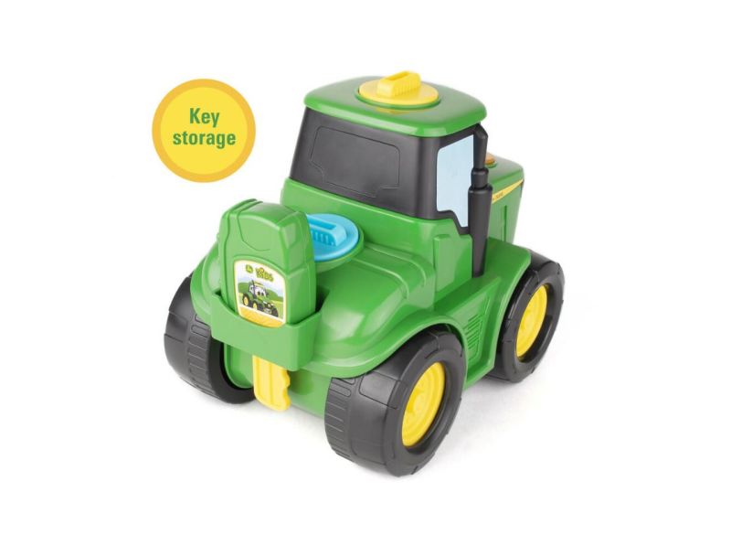 Dejte svému dítěti klíč k zábavným hrám s tímto traktorem John Deere Key-n-Go Johnny. Tato interaktivní hračka podněcuje jejich zvědavost díky 15 interaktivním funkcím, které podporují zkoumání příčiny a následku a kreativní hru. Vložte klíč do oranžového motoru a uslyšíte pět různých zvuků traktoru a světel. Otočte klíčem ve žlutém poli a Johnnyho oči se roztočí, aby ukázaly tři různé výrazy, z nichž každý je doprovázen různými zvuky a světlem. Použijte klíč v modrém poli a Johnny traktor řídí čtyřmi různými směry. Každé otočení klíčku je doprovázeno zábavnými zvuky spolu s rozsvícením motoru a světlometů. Klíčenka má v zadní části perfektní úložný prostor. Johnny je dodáván se 3 bateriemi AA, takže zábava může začít hned!