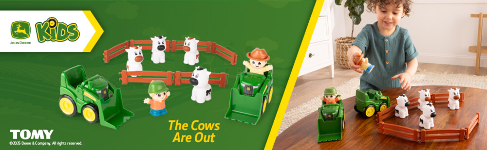 Hrací set The Cows Are Out obsahuje 14 dílů, včetně dvou traktorů s funkčními nakladači, čtyř krav, šesti plotových dílků a dvou figurek farmářů. Děti si mohou stavět ohrady, starat se o stádo a zapojit se do farmářských dobrodružství. Sada nabízí spoustu příležitostí pro kreativní hru a zábavu pro všechny malé farmáře.