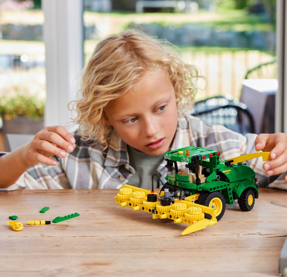Děti, které milují hračky na farmu, si mohou užít spoustu zábavy s LEGO® Technic™ John Deere 9700 řezačkou. Model je dodáván v klasických barvách John Deere a je vybaven řízením zadního kola a nástrojem pro sběr píce na přední straně, který mohou děti zvedat, spouštět a otáčet, aby napodobily činnost skutečného stroje na sekání kukuřice. Děti se mohou naučit, jak funguje skutečný kombajn John Deere, když zvedají, spouštějí a otáčejí nástroj pro sběr píce, aby napodobily činnost skutečného stroje na sekání kukuřice. Tento model je vybaven řízením zadních kol, jako je tomu u skutečného kombajnu John Deere.