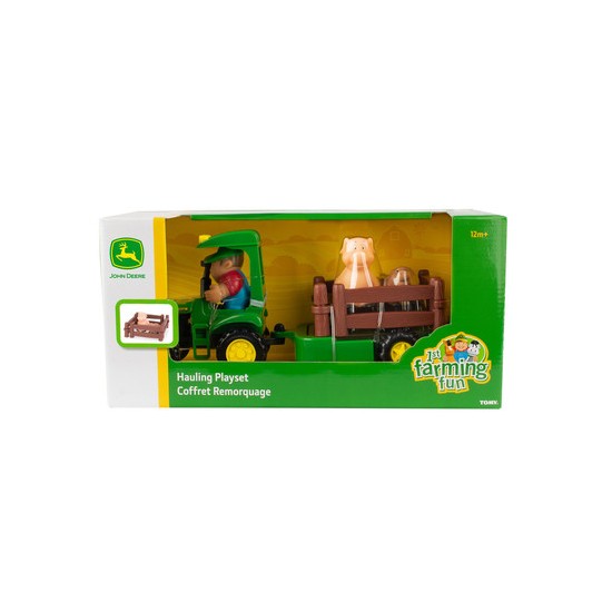 Bavíte se poprvé spolu se svým malým oblíbeným farmářem, ideální příležitost k rozšíření farmy hraček vašeho dítěte! Přepravní sada „1st Farming Fun“ John Deere je perfektní velikosti pro uchopení a hraní malých rukou, což z ní činí ideální první farmářskou herní sadu. Tato sada obsahuje odnímatelné oplocení, které pracuje na přívěsu nebo mimo něj, aby prasata byla neustále oplocená. Věk: 3+