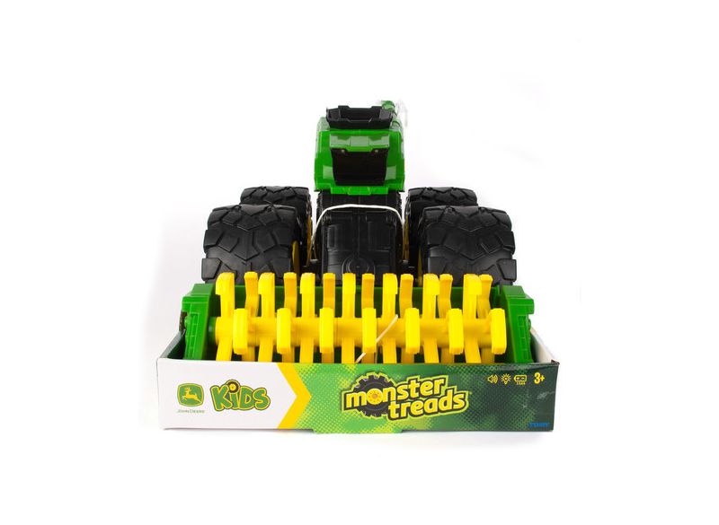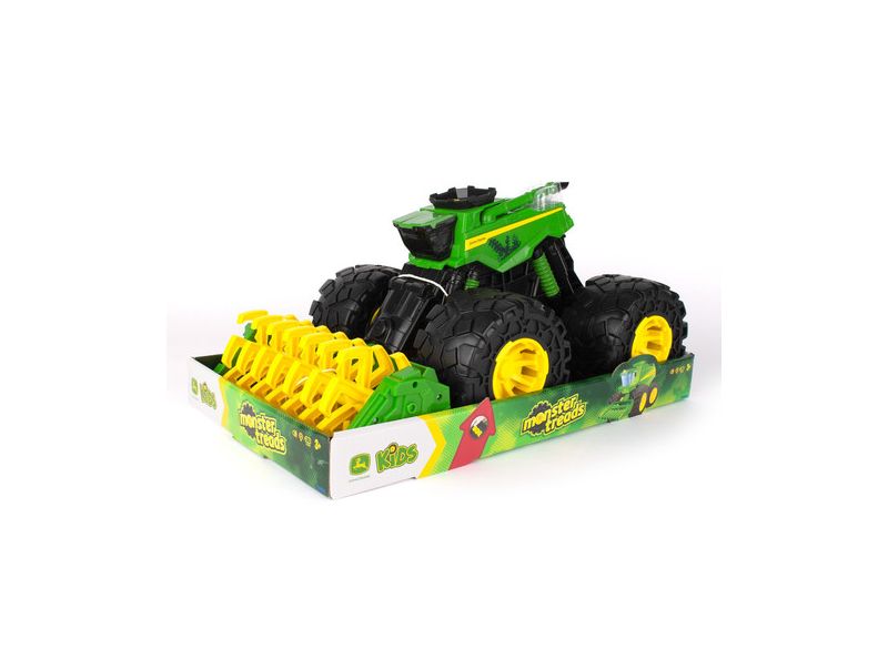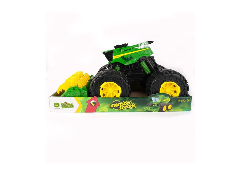 Tato obrovsky rozměrná série Monster Treads měří téměř 46cm na délku, 27cm na šířku a 24cm na výšku a je největší hračkou série Monster Treads, která kdy byla vytvořena! Tento model také disponuje světly a zvuky aktivovanými třemi různými tlačítky. Kromě toho má super pružné pneumatiky, jedinečně navržené vzory dezénu pneumatik a otáčivou hlavu kombajnu, která je aktivována posunutím kombajnu vpřed. Nejlepší z obou světů se střetává, když se síla John Deere spojí se stylem monster vozidla!