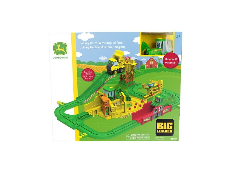 Sada hraček Johnny Tractor a Magická farma John Deere přináší zemědělskou zábavu přímo do vašeho domova. Sada obsahuje: 1 motor vozidla, 3 přídavná zařízení vozidla, několik kusů jablek pro přepravu a dráhu kolem 2 m, stejně jako cíle na farmě. Od 3 let