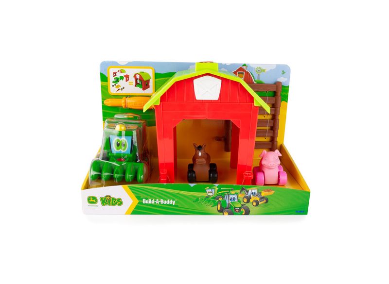 Hračky ze série John Deere Build-a-Buddy přináší na farmu zábavu v podobě rozebírání, montování a opravování! Malé děti se budou skvěle bavit pomocí přiloženého šroubováku, kterým Coreyho rozeberou a pak ho zase složí. Po sestavení má Corey otočná kolečka. Tato sada obsahuje koně a prasátko na kolečkách, kteří si také rádi zahrají! K dispozici je stodola pro zvířata a oplocení. Všechny hračky z řady Build-a-Buddy obsahují vyměnitelné díly, které lze měnit z vozidla na vozidlo.