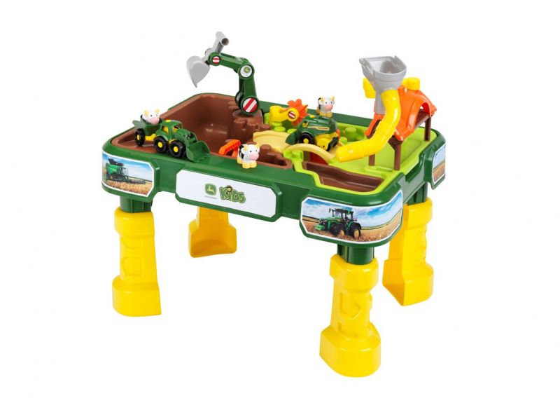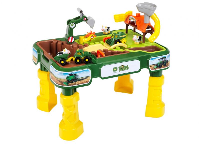 Farma John Deere - Hrací stůl s pískem a vodou 2v1 děti zabaví na dlouhé hodiny. Nabízí spoustu aktivit, vaši nejmenší si mohou hrát s traktorem John Deere, kombajnem nebo rypadlem. Na hracím stole najdete i farmu se stájí a třemi kravičkami, mycí stanici pro krávy a vozidla John Deere. Hrací stůl má 2 velké odnímatelné misky na písek a vodu. Děti si užijí spoustu zábavy s padacím mostem, vodními přepážkami, vodním kolem a malou miskou na rostliny. Zábava pro nejmenší i větší děti zaručena!