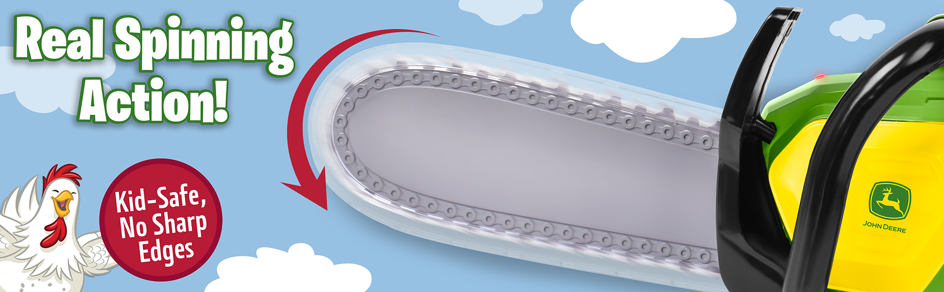 Připrav se na dobrodružství s hračkou John Deere Power Tools Motorová pila! Tato realistická napodobenina skutečného nářadí přináší dětem vzrušení z opravdové práce – ať už si hrají doma, nebo venku. Hračka je inspirována ikonickým designem John Deere a vybavena otáčejícím se plastovým řetězem, který se rozběhne po stisknutí spouště. Nechybí autentické zvuky při startování a červené kontrolní světlo, které dodává hře na opravdovosti.
