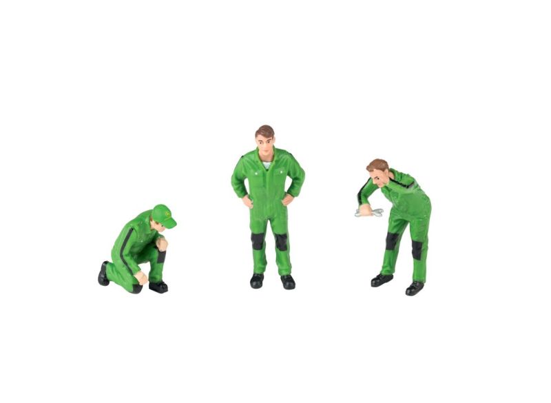 Sada 3 figurek mechaniků v měřítku 1:32 z plastu. Mechanici jsou oblečeni do pracovních kombinéz v barvách John Deere, skvělé jako doplněk na hraní k modelům John Deere.