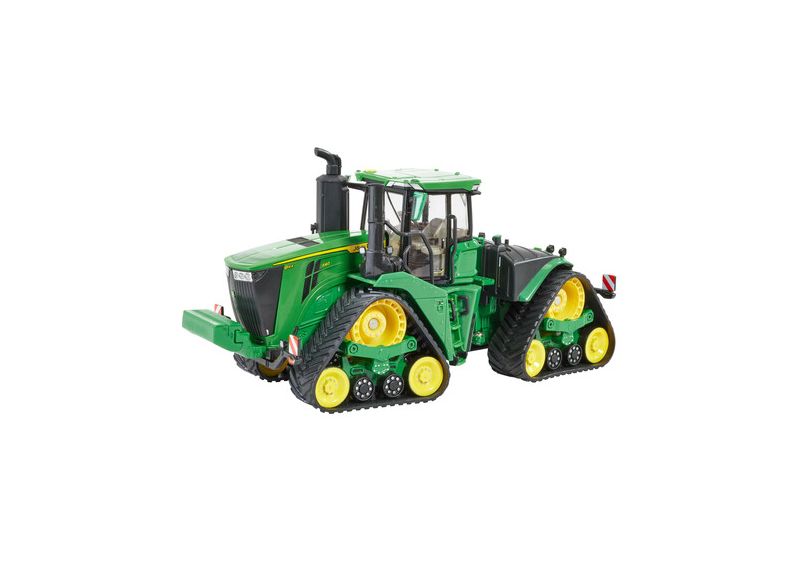 Zcela nový pásový traktor 9RX přichází s větším výkonem a přidanou tažnou kapacitou. Jeho celková stopa je až o 119 % větší než u kol a o 42 % větší než u dvoustopých. Úzká přepravní šířka a čtyř sloupkové odpružení kabiny usnadňují pohyb mezi poli. Traktor je vybaven novou kabinou, kde máte pocit, jako byste nastoupili do prémiového luxusního vozu. Model traktoru od výrobce Britains z kolekce Prestige zachytil všechny tyto detaily. Každý pás se otáčí na svém volně se otáčejícím hnacím kole a napínacích kladkách, přední pásy jsou také řiditelné. Model je vyroben z tlakově litého kovu a precizně lisovaného odolného plastu. Vhodné pro sběratele.