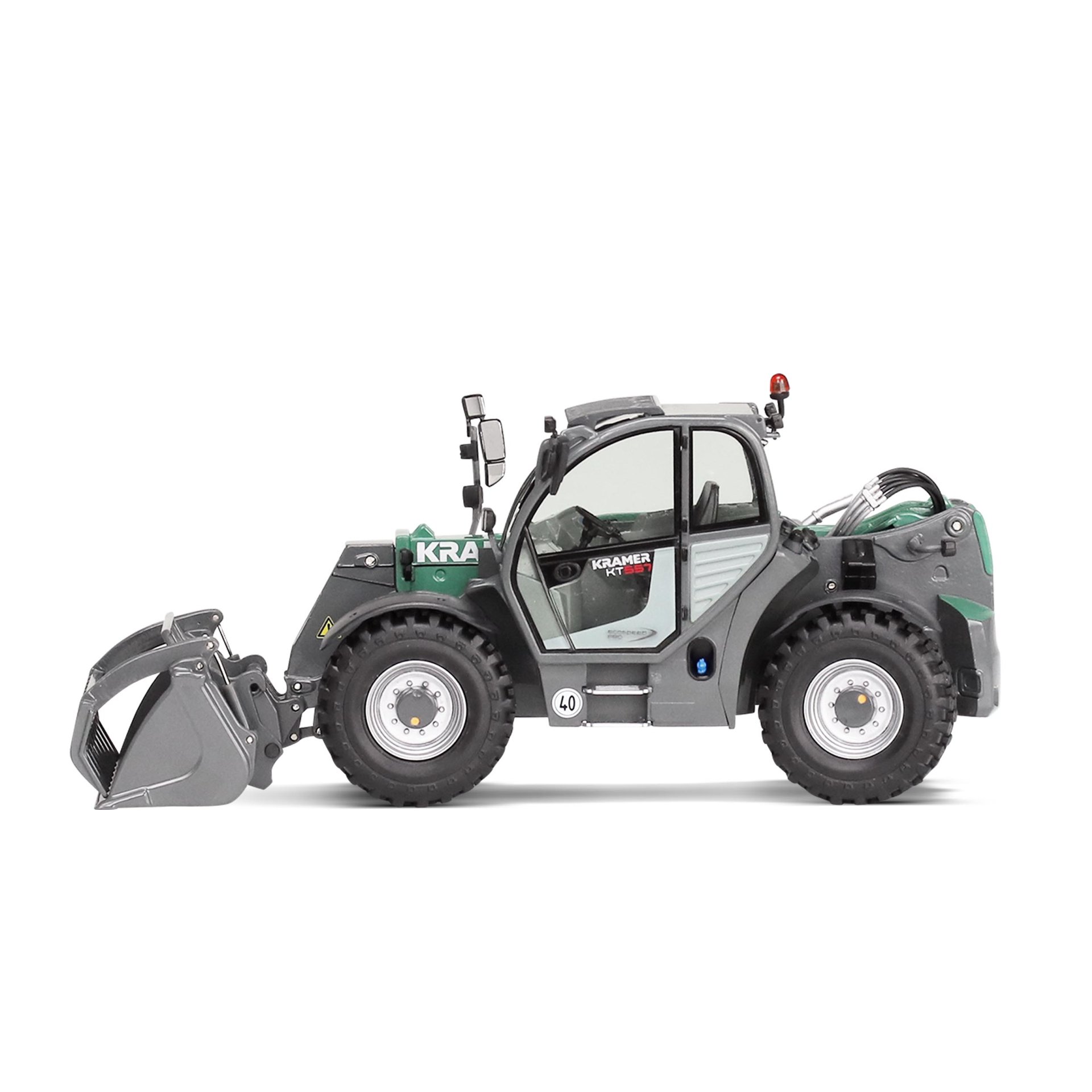Nezbytná výbava každého sběrače je model teleskopického manipulátoru Kramer KT557 s drapákovou lžící od společnosti NZG.
