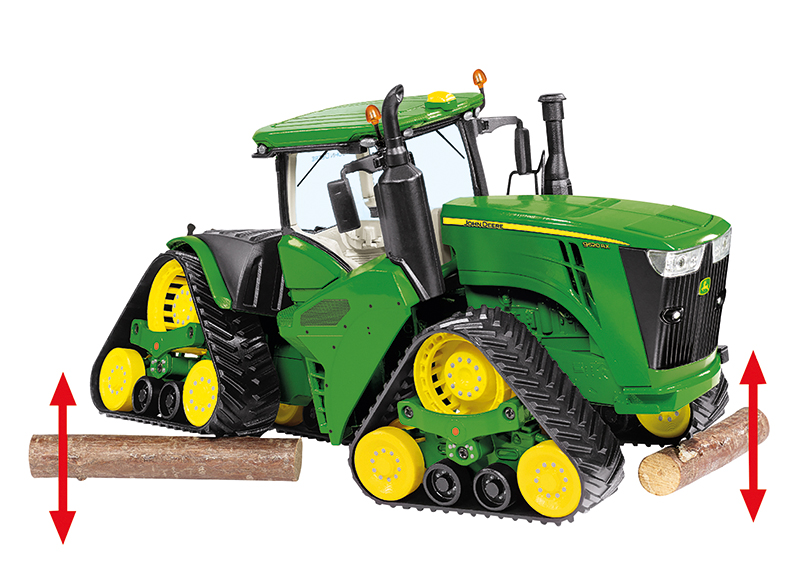 Vysoce detailní replika kloubového traktoru John Deere 9620RX v měřítku 1:32, vyrobená z tlakového odlitku s plastovými díly. Modely se vyznačují vysoce detailním interiérem kabiny a četnými filigránskými funkcemi, jako jsou 4 plně funkční kolejnice, otevírací kapota a dveře a další.