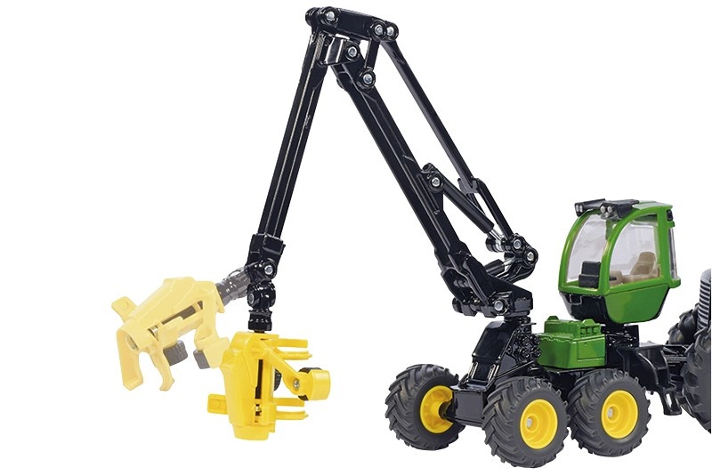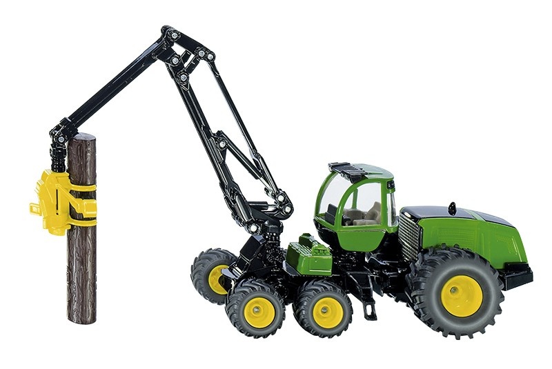 Robustní model od výrobce Siku v měřítku 1:50. John Deere Harvester je obrovské vozidlo pro kácení stromů. Model je vybaven pružně otočným ramenem, ketré zajišťuje pevné uchopení kmenů stromů. 6 kol s pneumatikami z pogumovaného materiálu a hlubokým profilem běhounu zajišťuje stabilní polohu, zatímco otočná kabina řidiče poskytuje vždy optimální výhled.