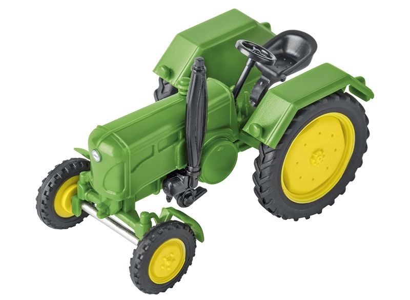 Vysoce detailní model slavného traktoru 'Lanz' v barvách John Deere. Měřítko: 1:87.