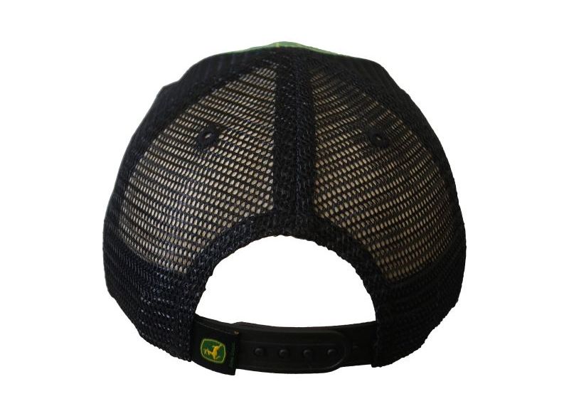 Dětská kšiltovka John Deere vzadu síťovaná s vyšívaným logem a nastavitelným zapínáním na patentky.