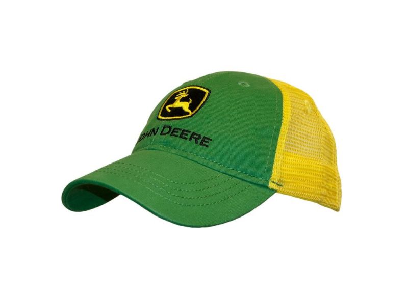 Dětská kšiltovka John Deere žluto-zelená se síťovinou v zadní části a s vyšívaným logem John Deere vpředu.
