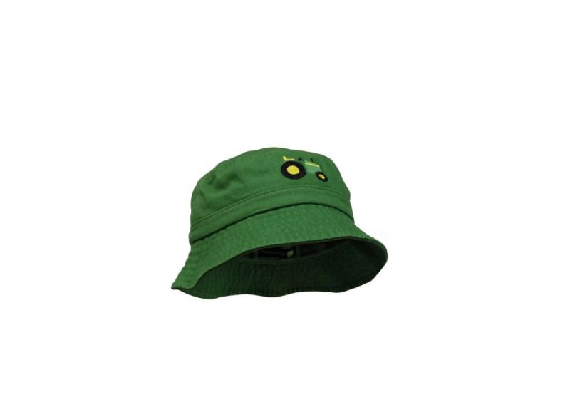 Dětský látkový klobouček John Deere s vyšitým traktorem vpředu. Ideální do slunečného počasí.