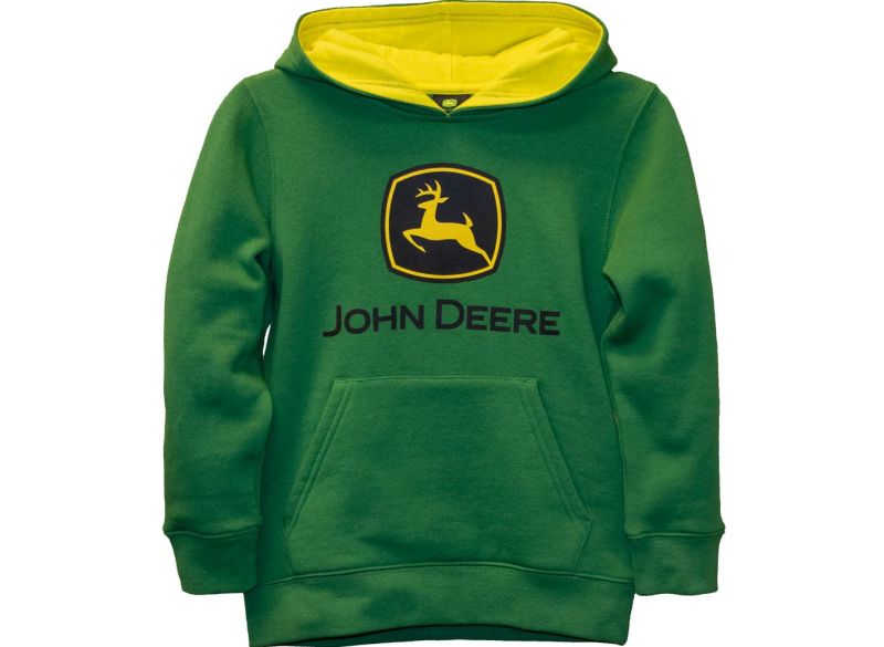 John Deere chlapecká zelená fleecová mikina s kapucí a sítotiskem loga na přední straně.
