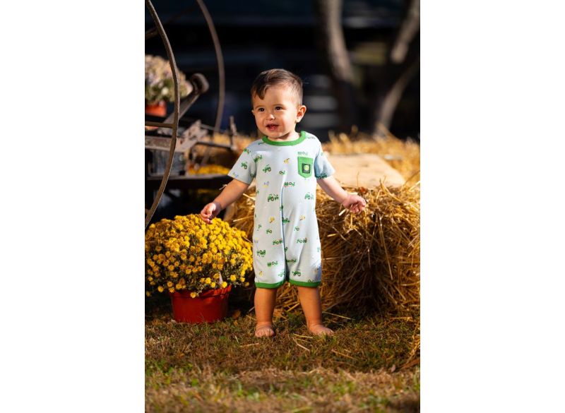 John Deere světle šedé kojenecké body s dlouhým rukávem s logem John Deere na hrudníčku. Body má měkký kulatý výstřih pro snadné oblékání a patentky v rozkroku pro rychlé...