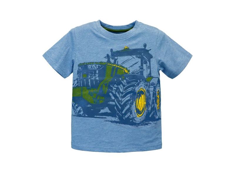 Dětské modré měkká tričko s dlouhými rukávy s historickým traktorem John Deere, který brázdí bláto. Krásný doplněk do každého dětského šatníku. Materiál: 40% polyester, 60%...