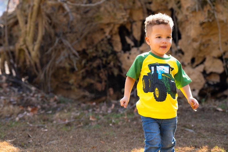 Dětské modré měkká tričko s dlouhými rukávy s historickým traktorem John Deere, který brázdí bláto. Krásný doplněk do každého dětského šatníku. Materiál: 40% polyester, 60%...