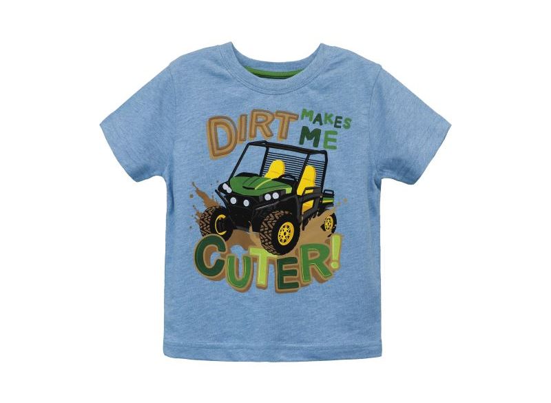 Dětské modré měkká tričko s dlouhými rukávy s historickým traktorem John Deere, který brázdí bláto. Krásný doplněk do každého dětského šatníku. Materiál: 40% polyester, 60%...