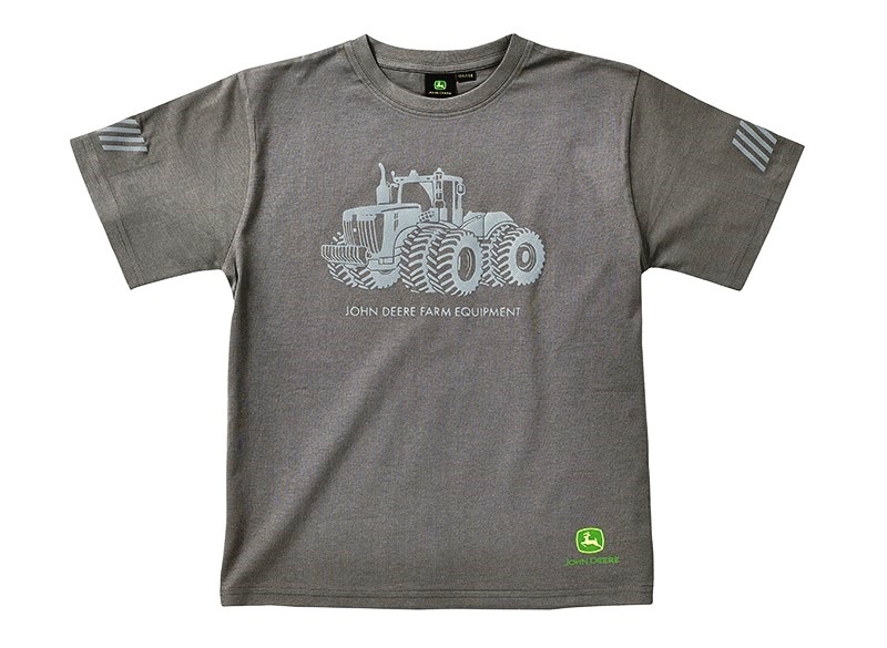 Chlapecké tričko John Deere v šedé barvě se sítotiskem loga značky na přední straně. Materiál: 60% bavlna, 40% polyester