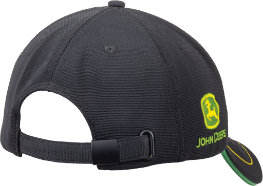 Černá kšiltovka John Deere s logem značky. Přední část je vyrobena ze 100% bavlny, zadní část ze 100% polyesterové síťoviny.