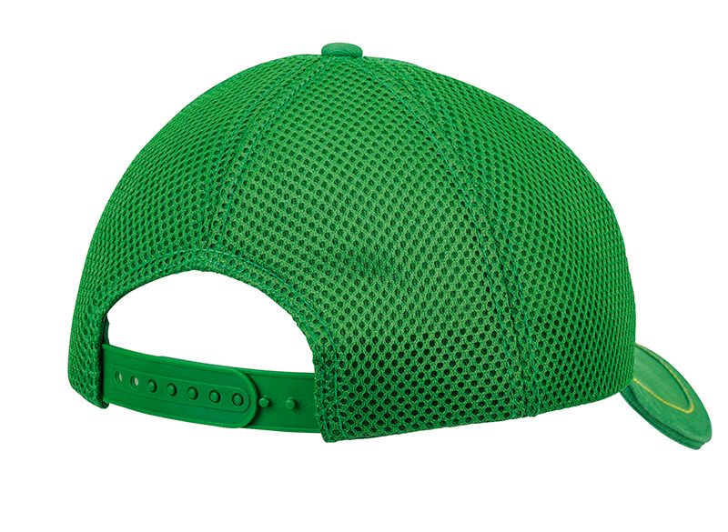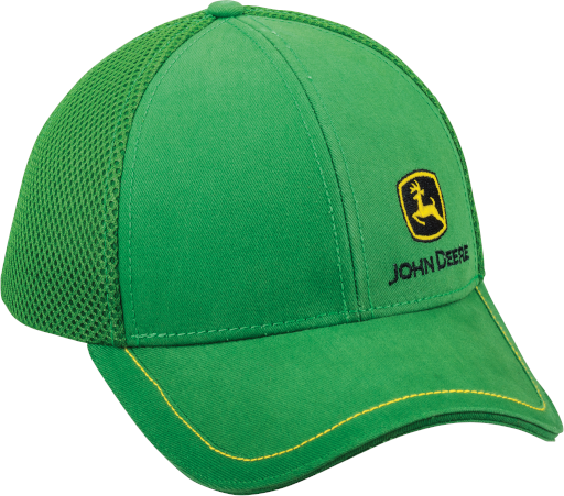 Kšiltovka ze síťoviny z vysoce kvalitního bavlněného kepru a vysoce kvalitní polyesterové síťoviny s vyšitým logem "John Deere" vpředu a potiskem "Nothing Runs Like A Deere" na kšiltu. S nastavitelným zapínáním na patentky v zelené barvě.