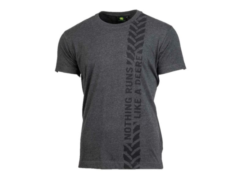 Uhlově šedé tričko John Deere s logem značky vytištěném na levé náprsní kapse. Materiál: 60% bavlna, 40% polyester