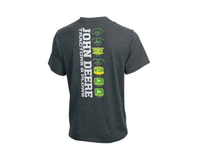 Uhlově šedé tričko John Deere s logem značky vytištěném na levé náprsní kapse. Materiál: 60% bavlna, 40% polyester