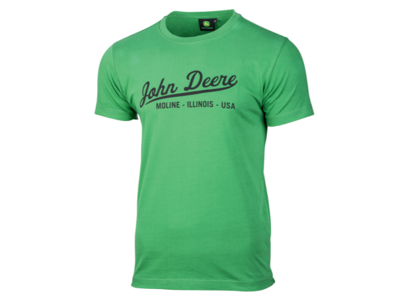 Zelené tričko John Deere se sítotiskem loga ve středu přední části. Materiál: 100% bavlna