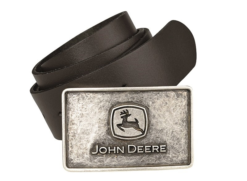 Opasek z pravé kůže s mosaznou sponou. Spona je odnímatelná a s logem John Deere. Materiál: 100% kůže
