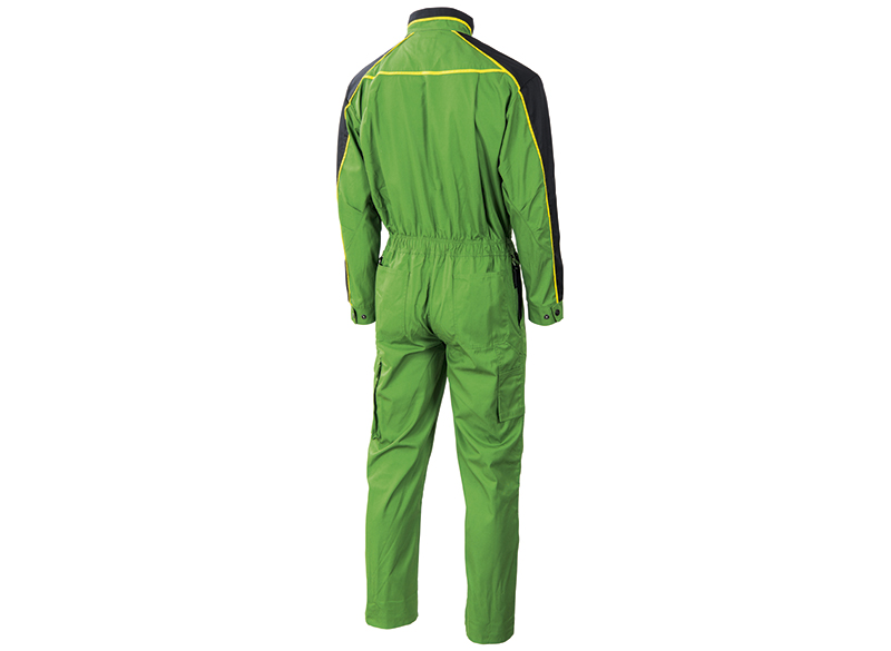 Elegantní a funkční pracovní kombinéza John Deere s mnoha užitečnými kapsami. Tento model zahrnuje možnost vložení chráničů kolen. Zipy na obouch stranách pasu a nohavicích pro odstraňování/navlékání částí kombinézy. Těsná kapsa s držákem na mobilní telefon a dvojitá kapsa na nářadí.